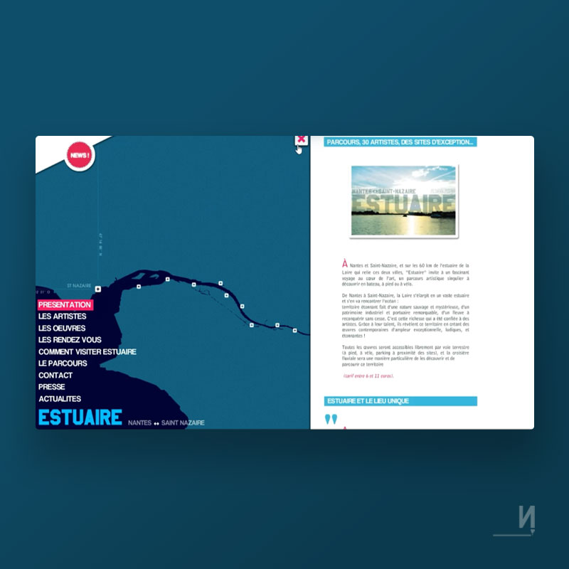 Réalisation d'une maquette d'un site internet pour le Lieu Unique situé à Nantes.Conception, animation et programmation. Hors ligne, un aperçu vidéo est disponible.