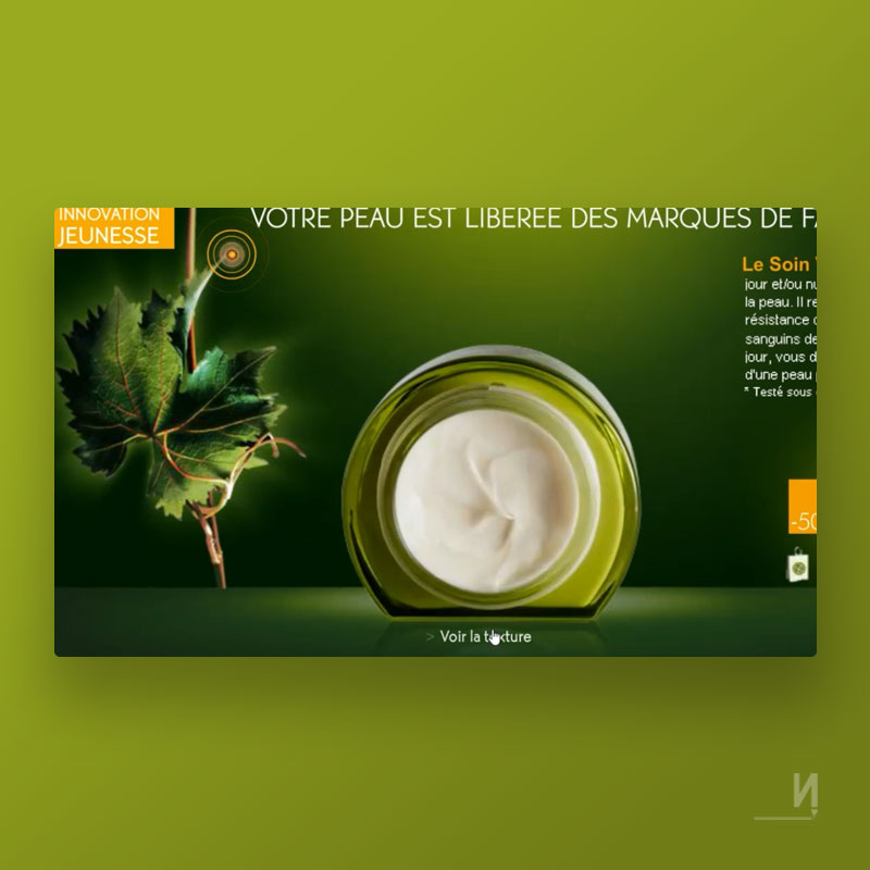 Réalisation d'une application dédiée au produit "Cure Solution" dévéloppé par Yves Rocher. Conception, animation et programmation. Hors ligne, un aperçu vidéo est disponible.