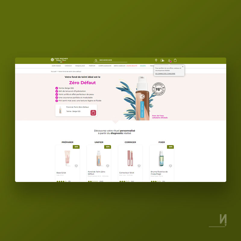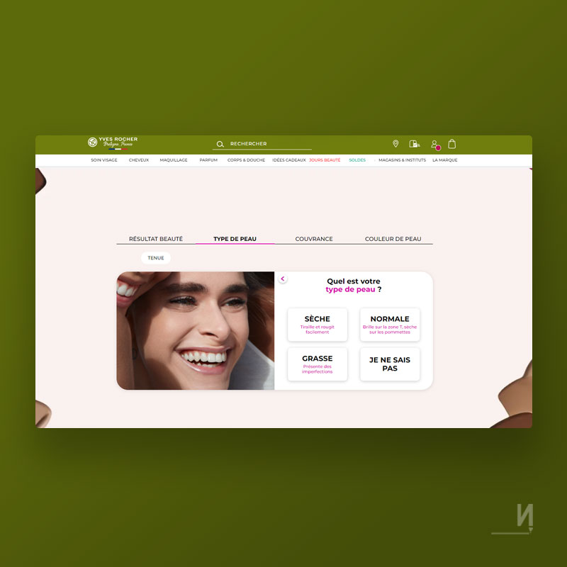 Application web visant à établir un diagnostic conçu pour l'aide au choix du consommateur quant à son fond de teint grâce à un arbre décisionnel. Conception, rédaction, webdesign et programmation.